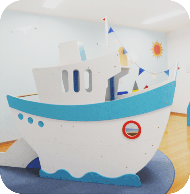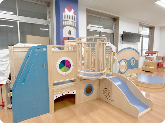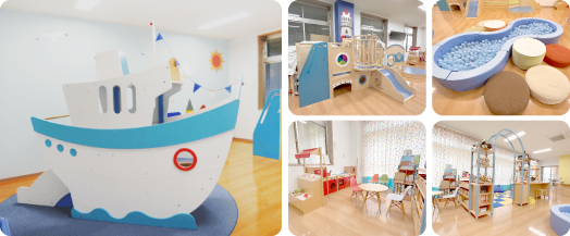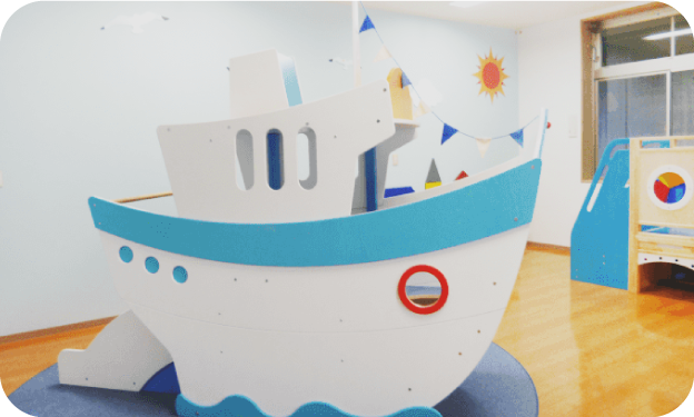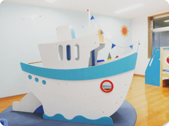 藤見幼稚園・ふじみの森保育園に併設されている子育て支援センターです。「オーシャン・海」がテーマになった遊び場は、船のかたちをした大きな遊具がシンボルです。