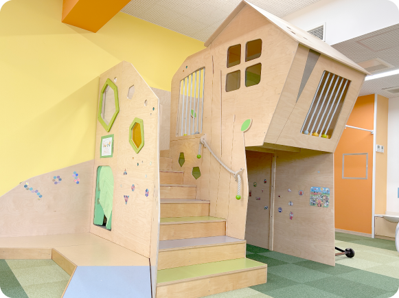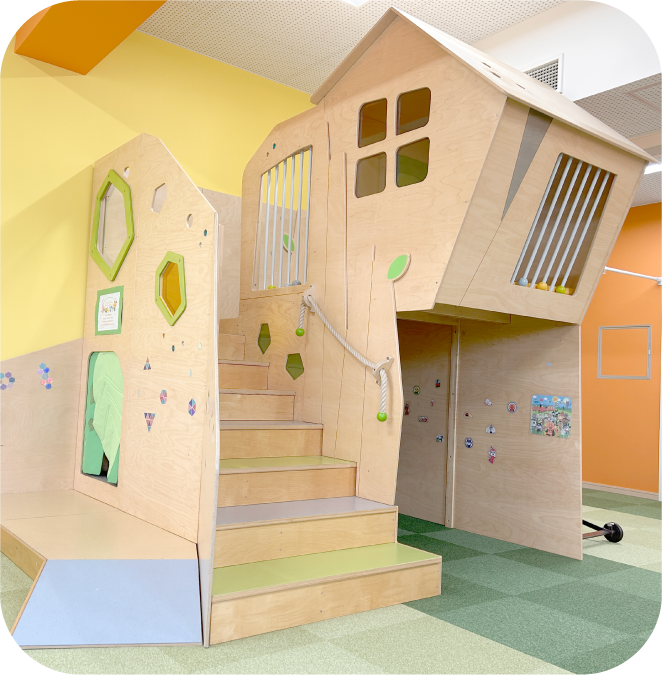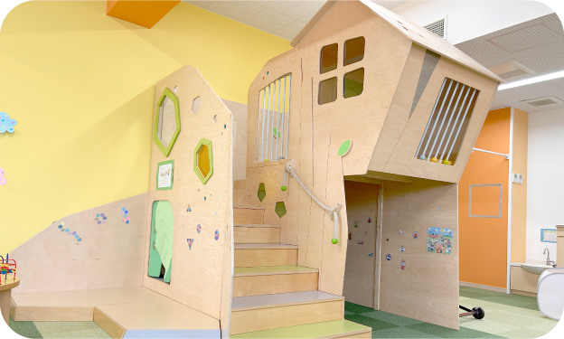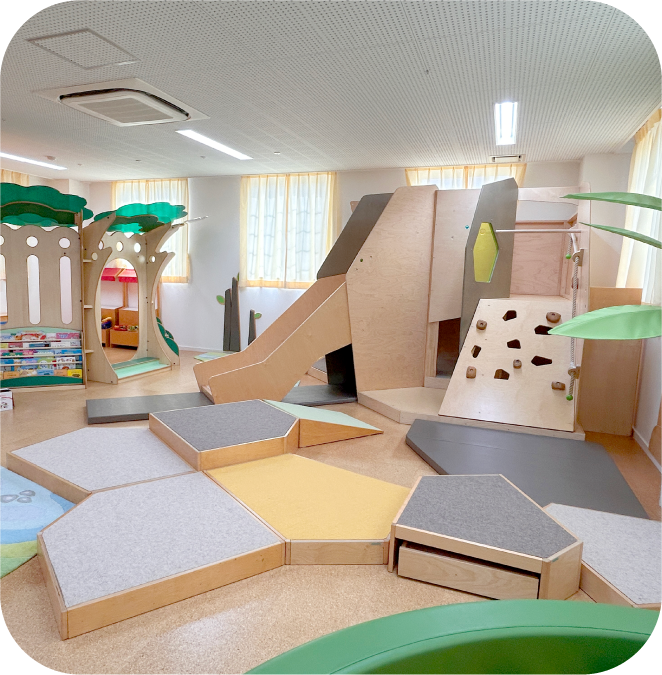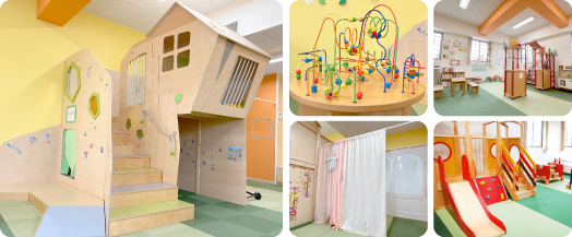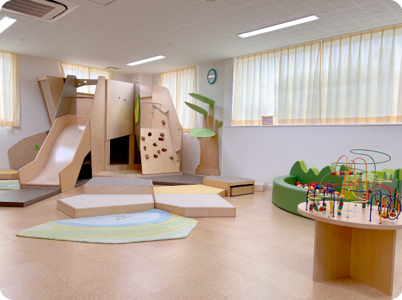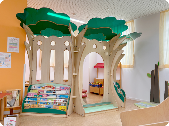 天鐘こども園に併設されている子育て支援センターです。建物をモチーフにした大型遊具が複数あり、のびのびと遊んでいただけます。